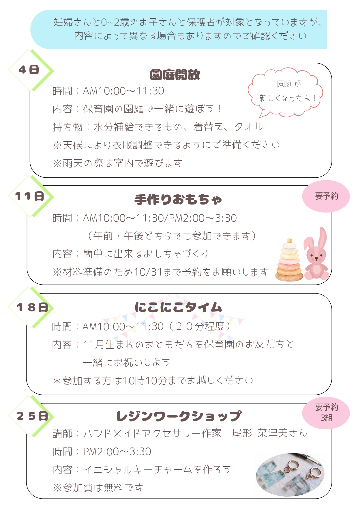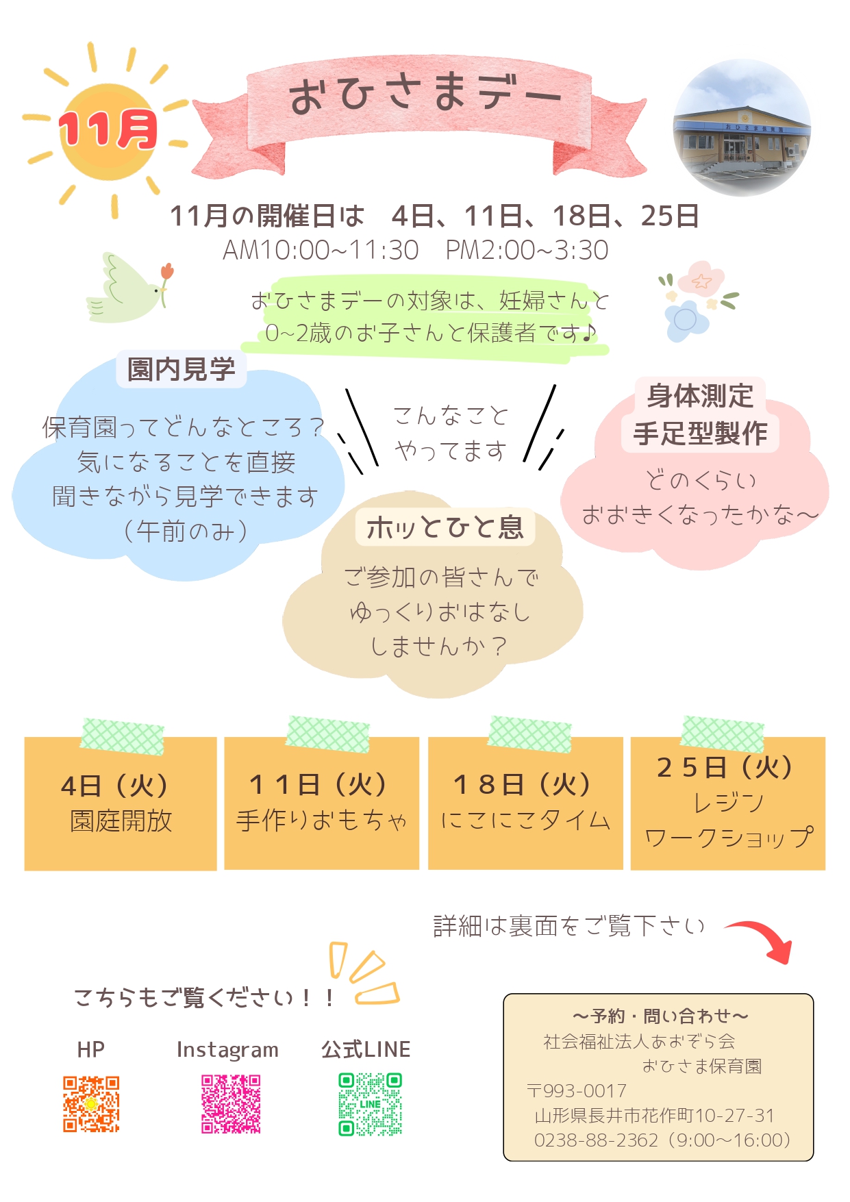 おひさま保育園「11月のおひさまデー」開催のお知らせ