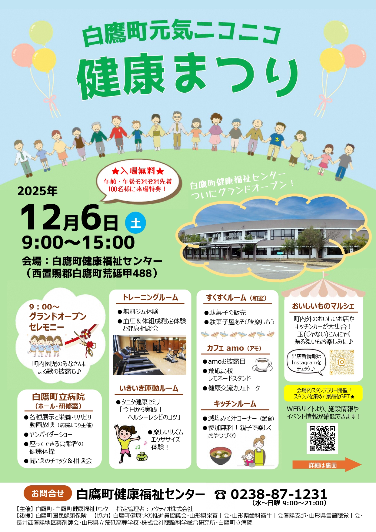 【連絡先】 白鷹町健康福祉センター 0238-87-1231